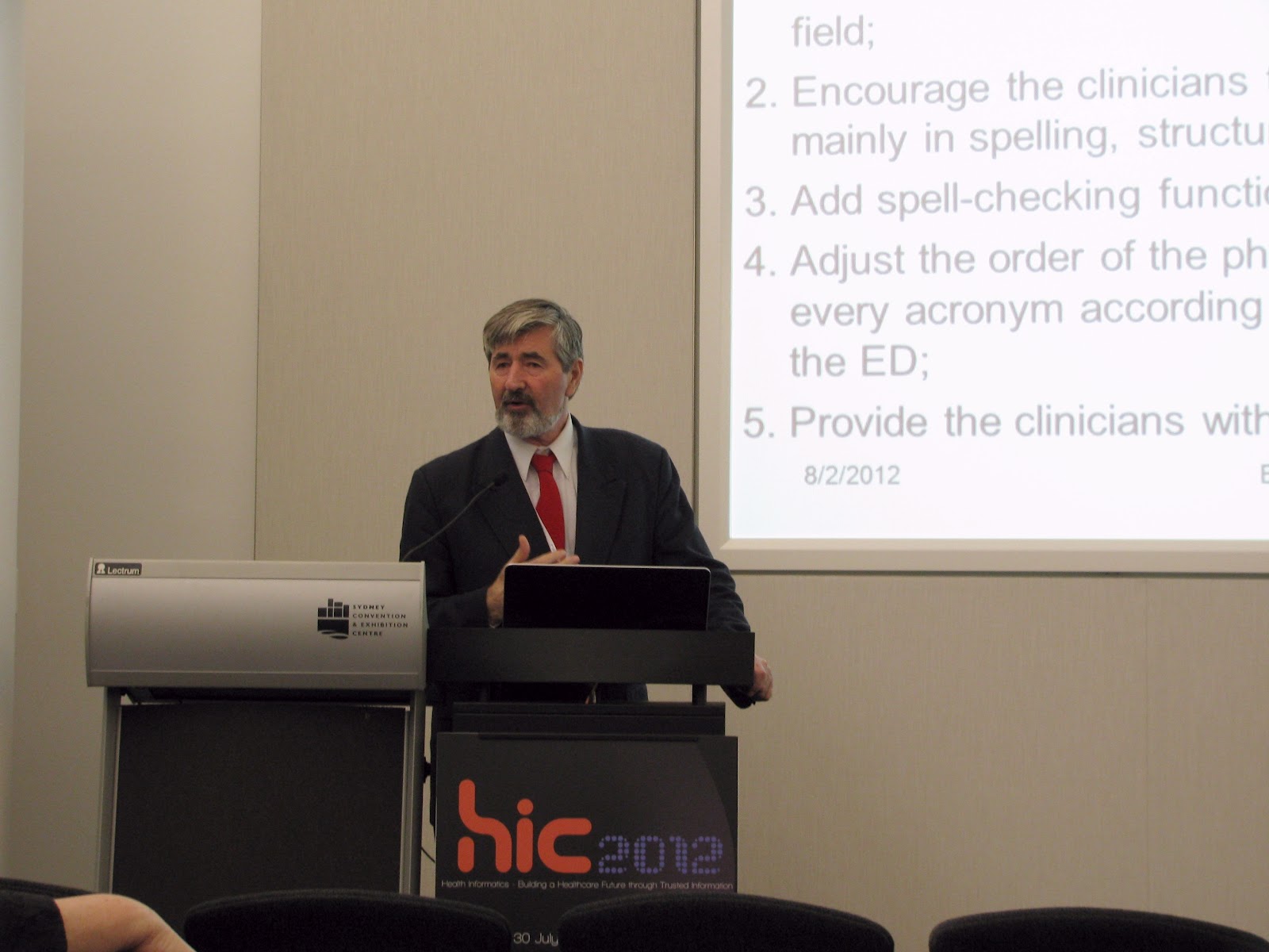 | University of Sydney Professor Jon Patrick presenting on computational linguistics. Jon is the author of a treatise on health IT defects (at this link), mentioned numerous times on this blog. Click to enlarge. |